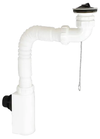 Сливной комплект NOFER состоит из сифона, гибкого шланга и клапана наружного монтажа. Данный комплект подходит для эргономичной раковины H5.