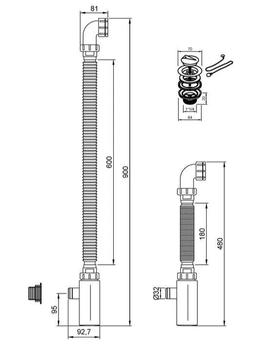 Сливная трубка Nofer гибкая с пластиковым сифоном малым 302А