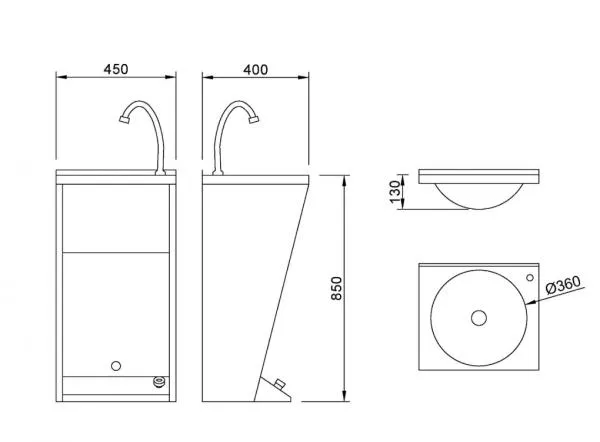 Умывальник Nofer с передней крышкой и кнопкой для слива воды 13044.2.S