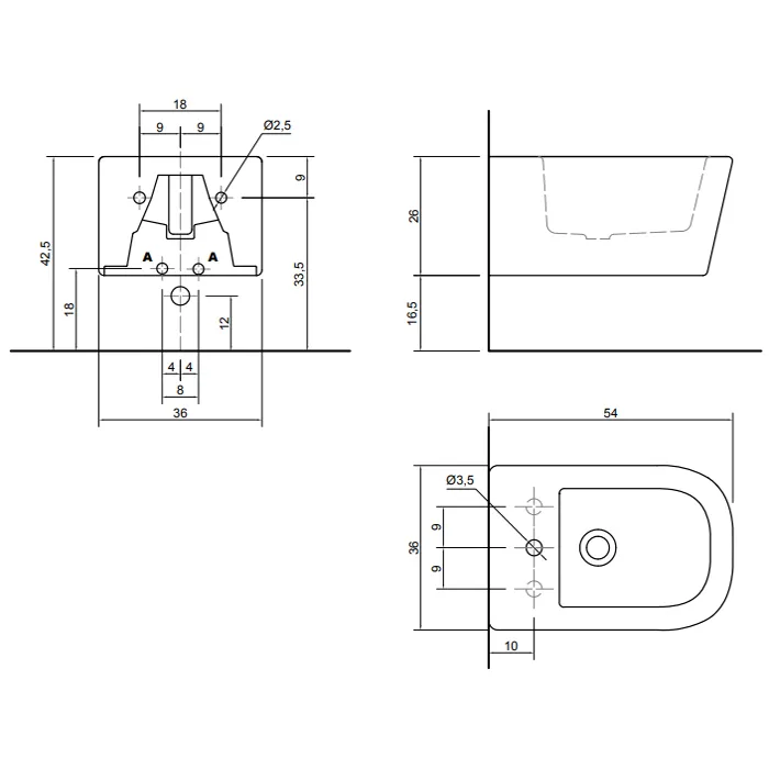 Биде подвесное Antonio Lupi Komodo 54х36,6, белый матовый А0002423689