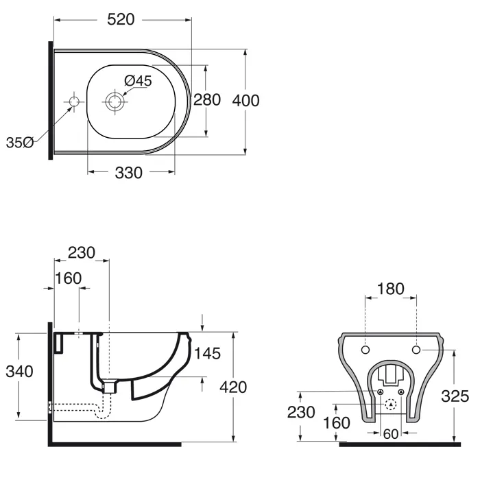 Биде подвесное Azzurra Charme 52х40, с 1 отв.c креплением KIT 2000 CF, белый CHBKS000000M/(CHA500/SOSK bi)*1