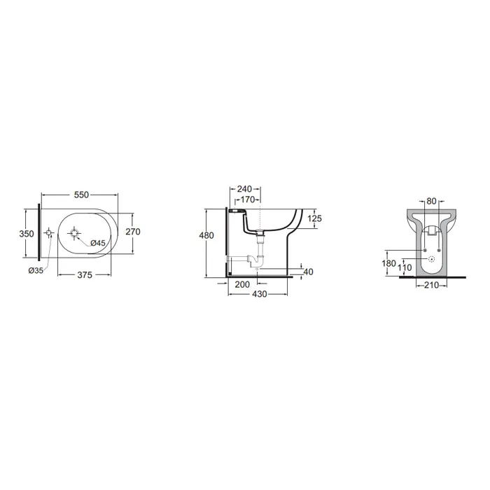 Биде напольное Azzurra Nuvola 55х35x48h c 1отв, с креплением VFV, белый NUBIT000048MBI/(NUV500/48 bi)*1