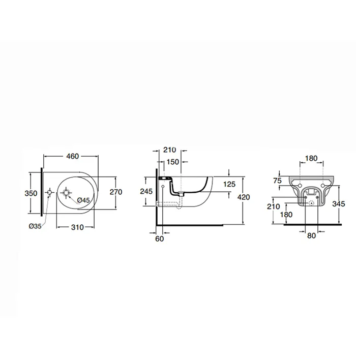 Биде подвесное Azzurra Nuvola Mini 46х35см c 1 отв., белый, с креплением kit2000cf NUBKS004600MBI/(NUV546/SOSK bi)*1