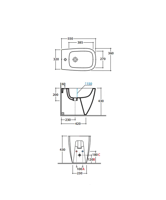 GLOBO GN009BI Биде GENESIS напольное приставное, размер 55 см, крепление в комплекте, цвет bi (Bianco)