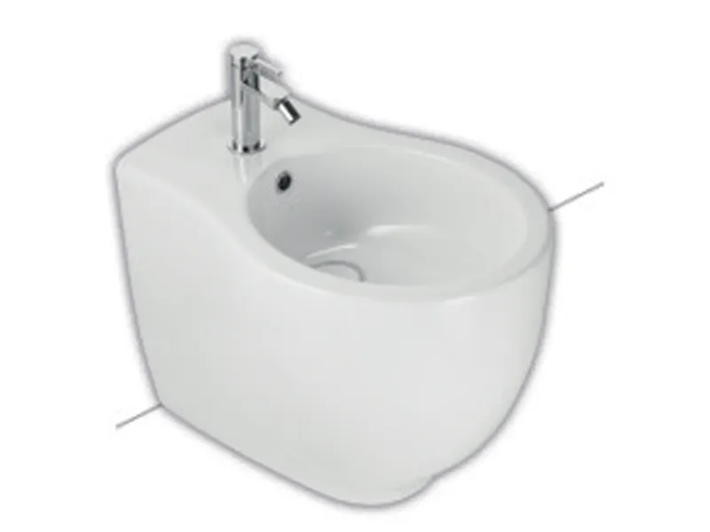 Биде напольное HATRIA LE FIABE Y1DZ01 с одним отверстием под смеситель, отверстие перелива, размер 37x55.5 см, цвет белый. Крепления в комплекте. Сифон и донный клапан приобретаются отдельно.