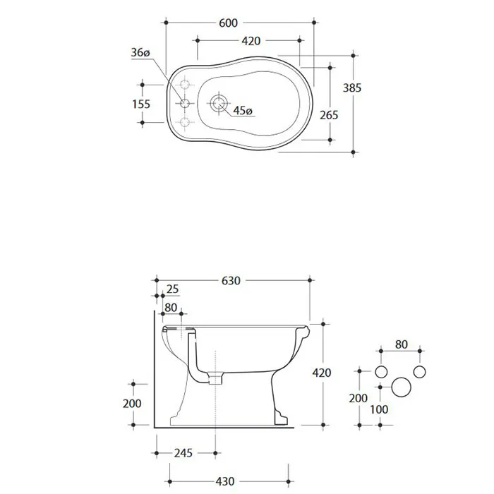 Биде напольное Kerasan Retro с 3-мя отв под смеситель, белый 102001*3