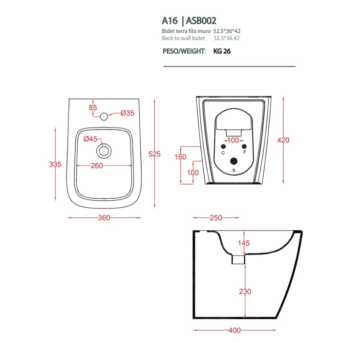 Биде напольное Artceram A16 36х52, 1 отверстие, tortora ASB002 40 00