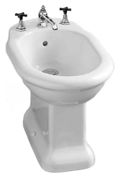Биде напольное с внешним изливом из керамики выполнено в современном стиле. Предлагается с одним или тремя отверстиями под смеситель и переливом.