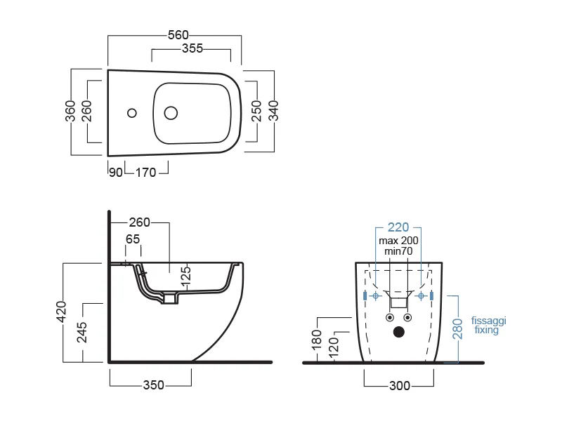 Биде приставное HATRIA NEXT A0Y3AU02, одно отверстие под смеситель, размер 36x56 см, цвет черный матовый, система креплений в комплекте. Донный клапан и сифон приобретаются отдельно.
