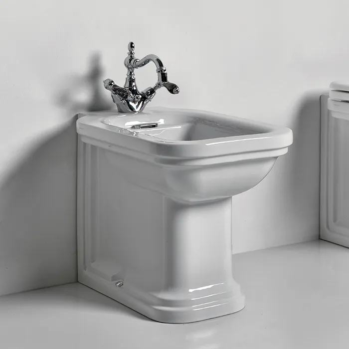 Биде напольное пристенное Kerasan Waldorf 55х37, с 1 отв под смеситель, белое, заглушки хром 4121K1bi/cr*1
