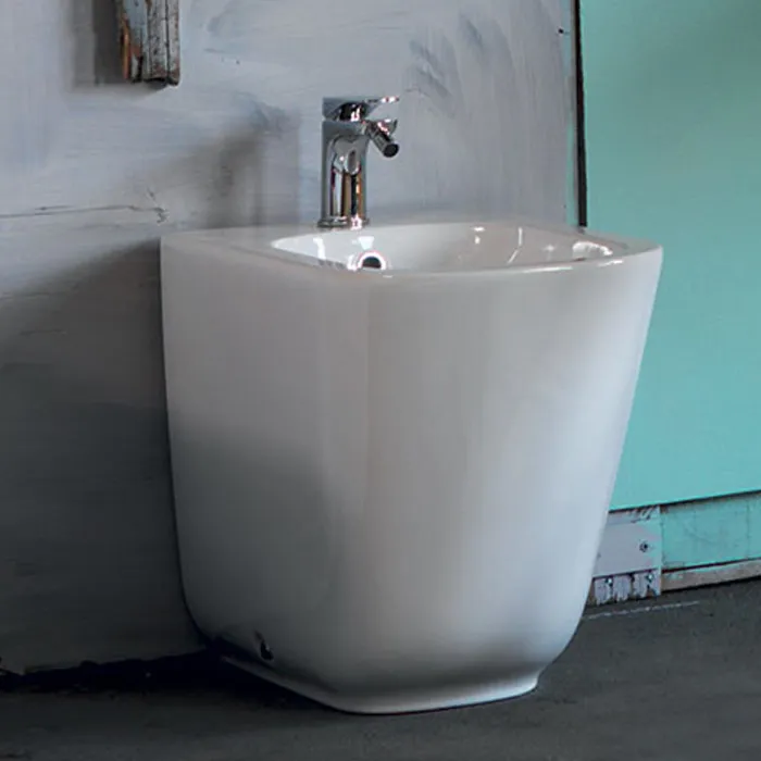 Биде напольное пристенное Kerasan Tribeca 55, с 1 отв под смеситель, c креплением WB5N, белый 512001