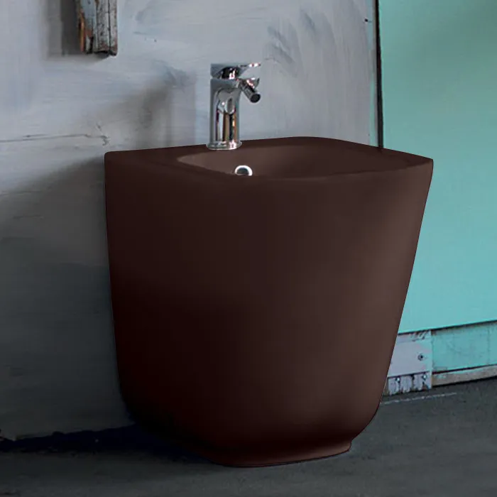 Биде напольное пристенное Kerasan Tribeca 55, с 1 отв под смеситель, c креплением WB5N, Borgogna matt 512075 Borgogna matt