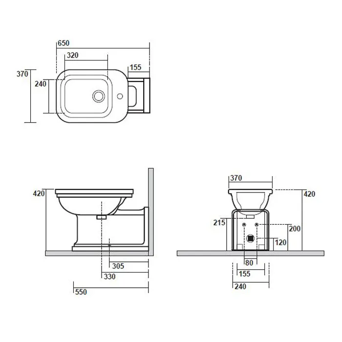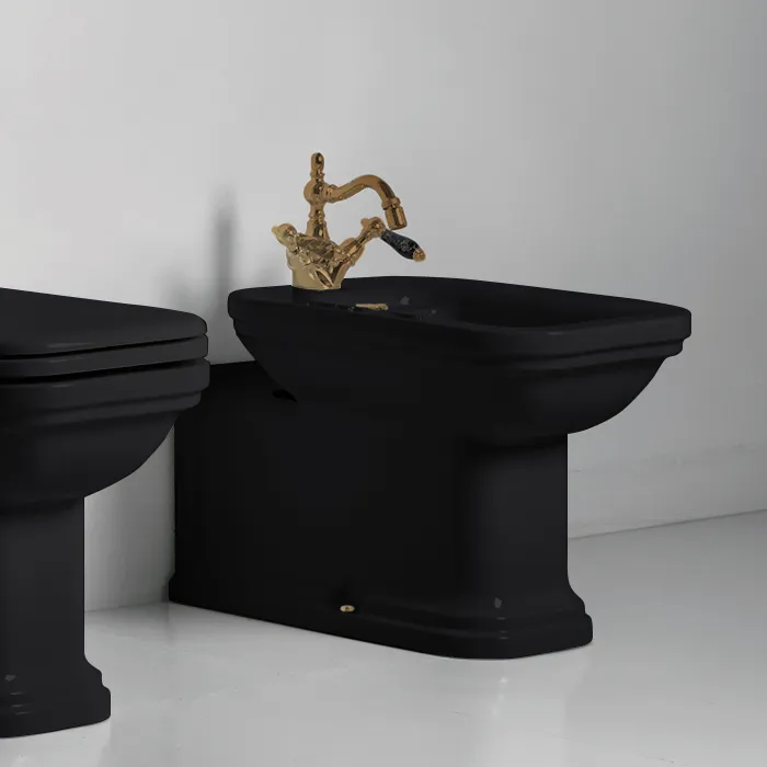 Биде напольное пристенное удлиненное Kerasan Waldorf Prolungato 65х37хh42, с 1 отв под смеситель, черный, заглушка хром 4120K4 nero/cr *1