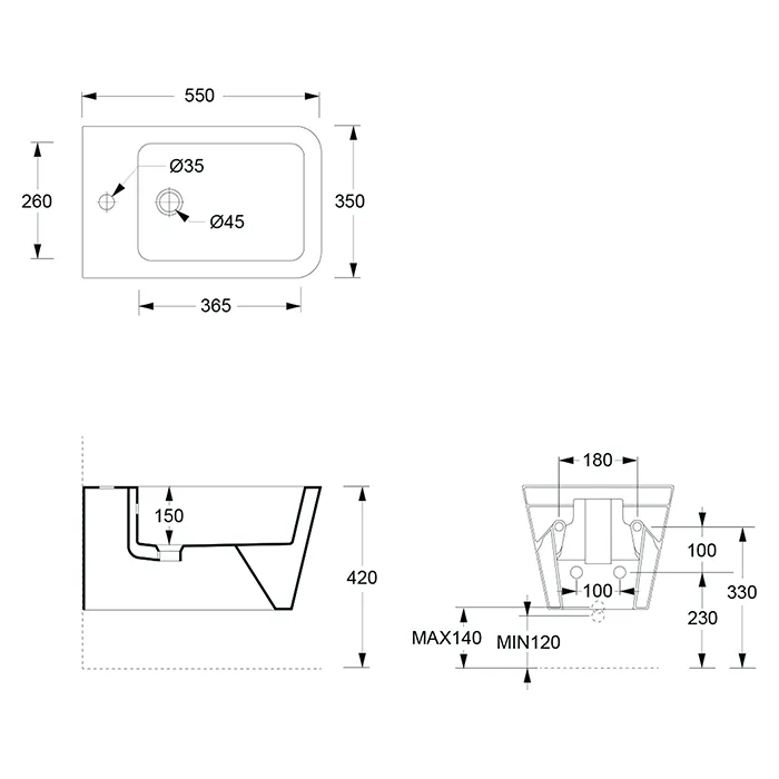 Биде подвесное Alice Hide Square 55х35, белый матовый, 31220109