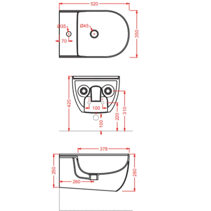 Биде подвесное Artceram THE ONE 52х35, с креплениями, с 1 отв под смеситель. blu zaffiro THB001 16 00 blu zaffiro*1
