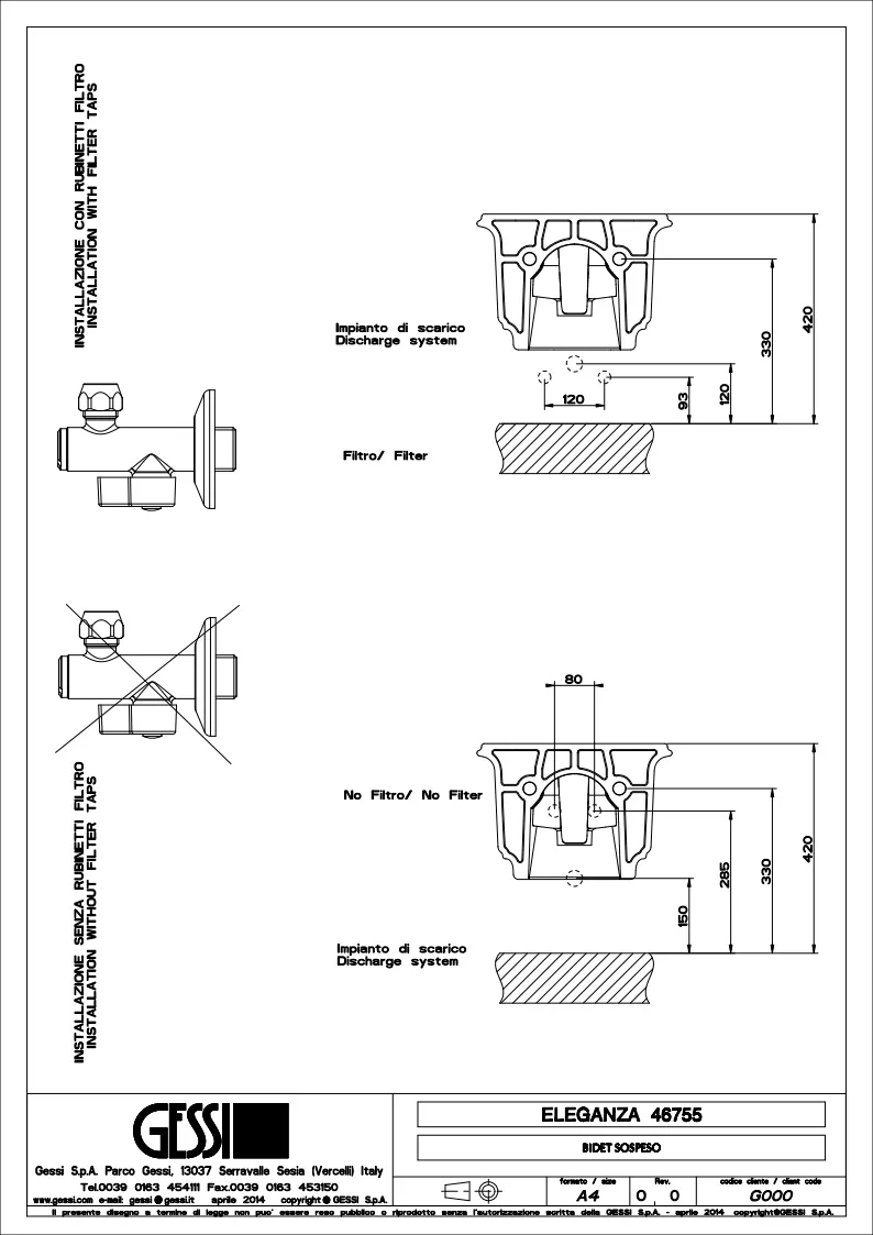 Биде оснащено переливом и центральным отверстием для подключения кранов и фитингов.