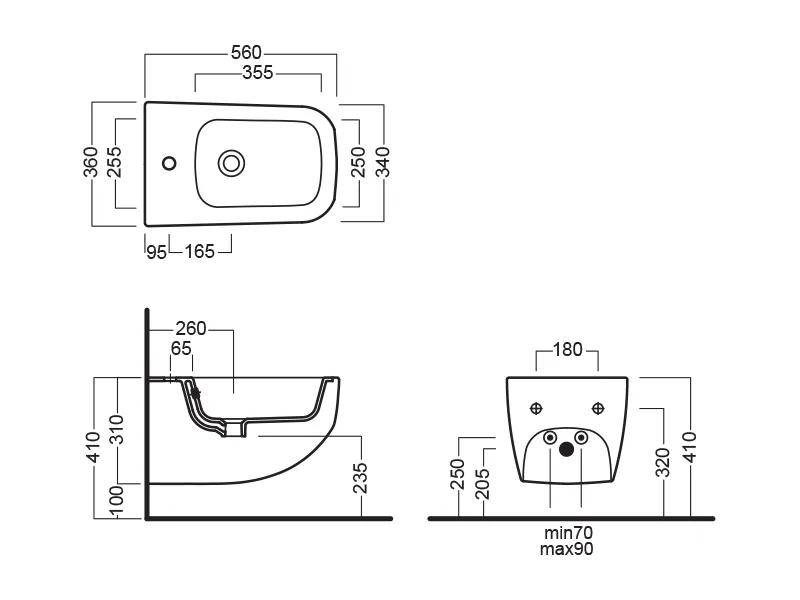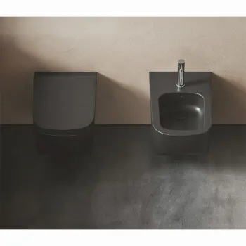 Биде подвесное HATRIA NEXT A0Y1F202 безободковое, с 1 отверстием для смесителя, с отверстием перелива, размер 36х56 см, цвет черный матовый. Подвесное биде в комплекте со специальным крепежом и специальным сифоном. Установка на системы инсталляции для подвесной сантехники.
