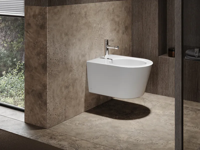 TOTO Биде подвесное серии RP B552E с одним отверстием под смеситель, с переливом, цвет белый. Размеры 38x54x29см. Технология CEFIONTECT.
