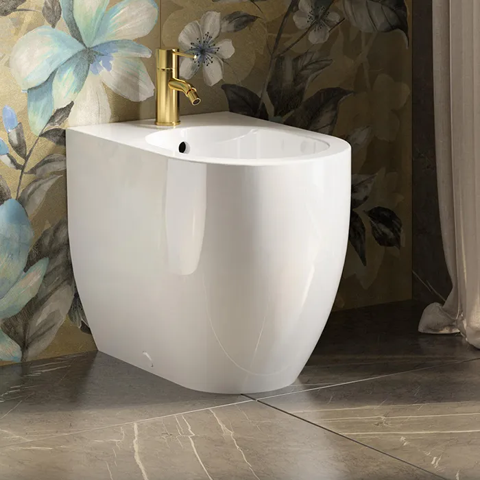 Биде приставное Kerasan Flo 55, с 1 отв под смеситель, белый, крепить на силикон или на крепеж 762901 312401