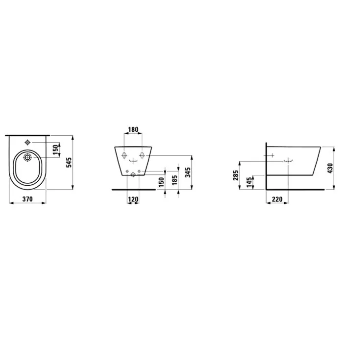 Laufen Kartell Биде подвесное 545х370х290мм, с 1 отв. под смеситель, без боковых отв, с покр. LLC, цвет: белый