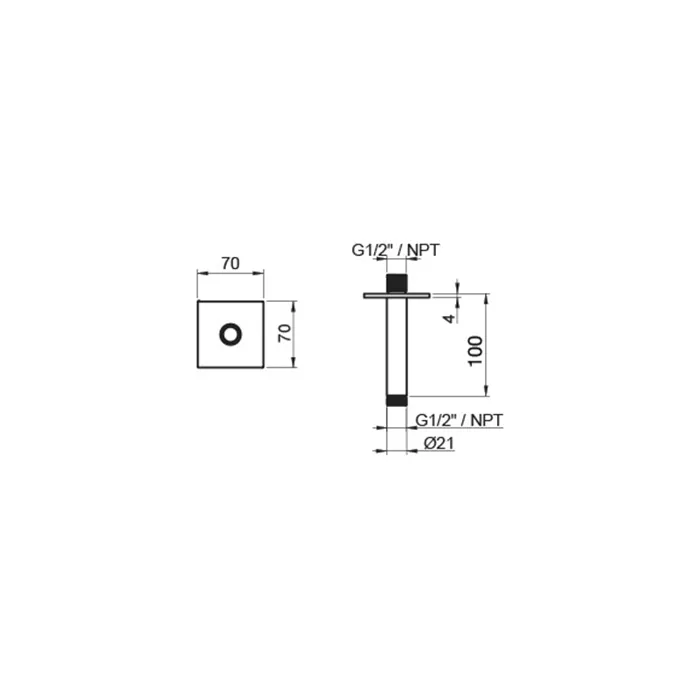 Держатель верхнего душа потолочный Almar 10 с квадратным отражателем, нержавеющая сталь брашированная aisi 316 E021100.316