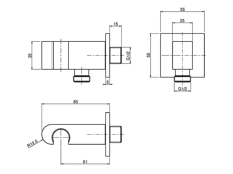Держатель для душа Fima Carlo Frattini F5905CR из латуни с подводом воды 1/2, цвет хром
