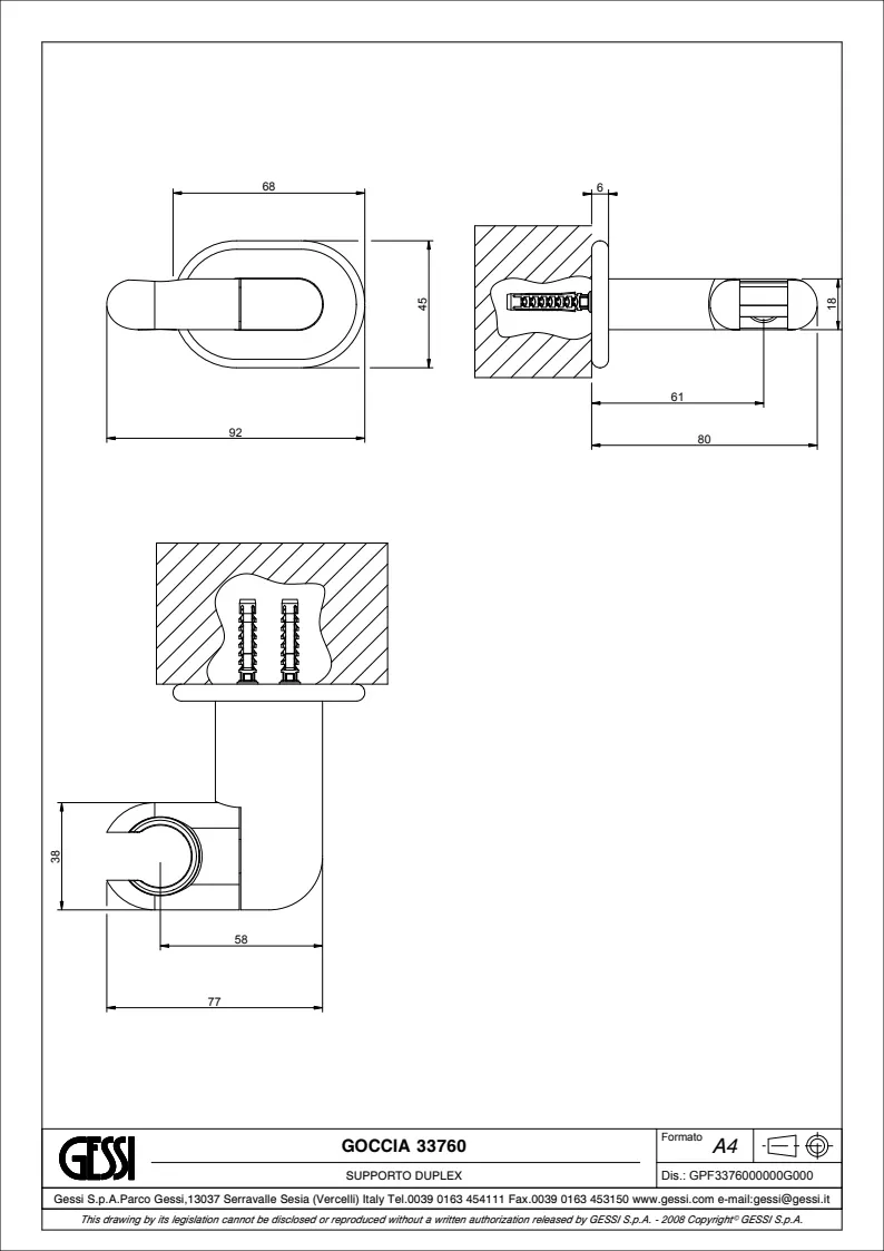 Держатель душевой лейки Gessi Goccia 33760.031 Chrome