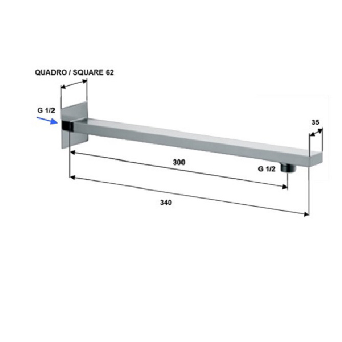 Держатель душевой лейки настенный прямоугольной формы Daniel Docce 30 хром A553 30см