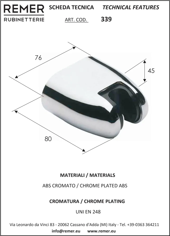 Держатель ручного душа Remer с измен.наклоном пластик хром (CR) 339