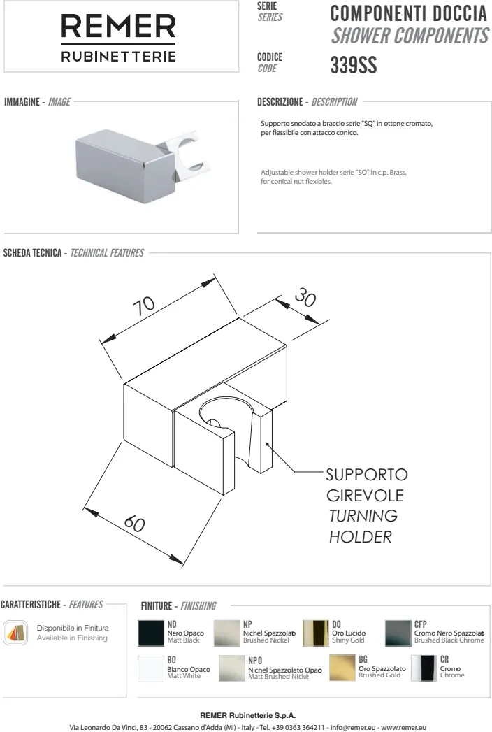 Итальянский бренд Remer Rubinetterie более 50 лет специализируется на выпуске смесителей, душевых систем и аксессуаров для ванной комнаты и кухни. Главная особенность продукции Remer — сочетание классического итальянского дизайна и современных технологий. В отличие от многих конкурентов, компания выпускает полный цикл изделий: от литейного производства латунных корпусов до хромирования и финальной сборки. Это обеспечивает стабильное качество, долговечность и оптимальную цену для европейской сантехники премиум-класса.