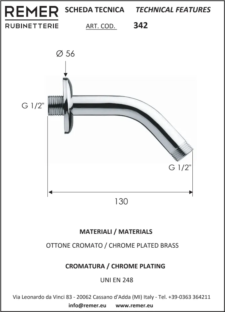 Отвод для душа из хром. латуни с декоративным фланцем, наруж.1/2 х наруж.1/2