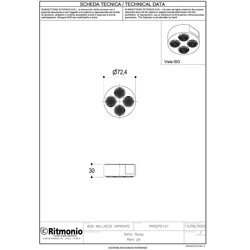 Насадка для душа Ritmonio Diametro35 Wellness дождевая струя PR55PB101 F40