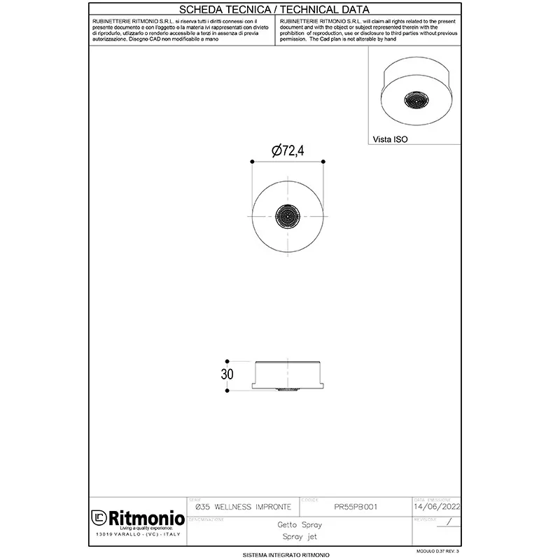 Насадка для душа Ritmonio Diametro35 Wellness распыляемая струя PR55PB001 F40