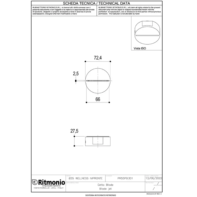 Насадка для душа Ritmonio Diametro35 Wellness водопадная струя PR55PB301 F40