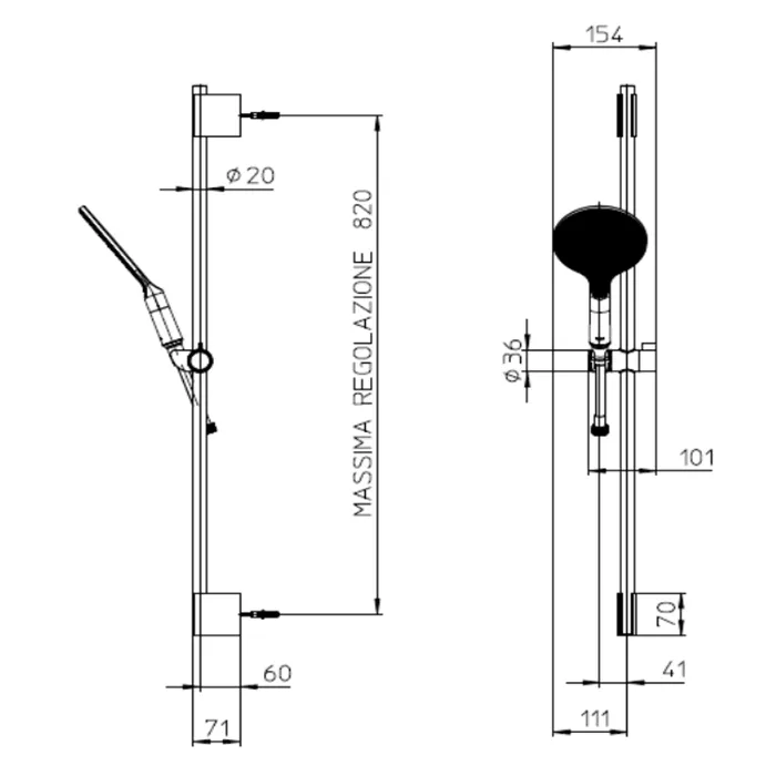 BOSSINI APICE Комплект для душа с штангой, ручным душем APICE Ø 140 и шлангом 1500 мм., цвет