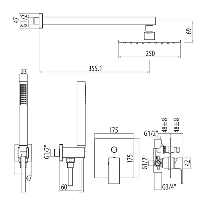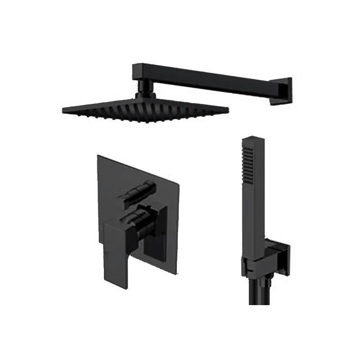Душ набор со смесителем встр. в стену Gattoni Kubik ручной лейкой и верхним душем 250х250, nero opaco 2590/25NO (ст. арт. KTQ15/PDNO)