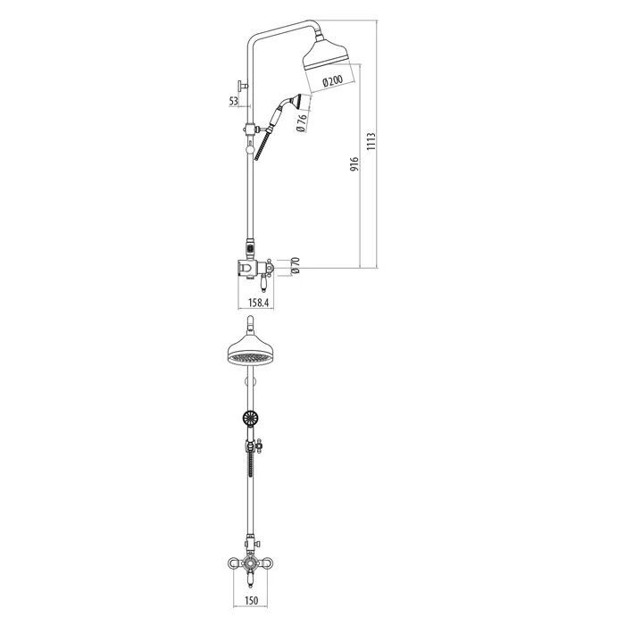 Душевая колонна Gattoni Pd включающая ручной душ, еситель с термостатом,верхнюю лейку диаметром 200 с антикальцием, хром KIT/TS80C0cr