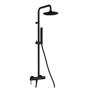 Fantini 86138130 NOSTROMO Штанга для душа с внешней частью смесителя ручки переключатель с закрытием, на 2 потока с поворотной кнопкой ручная лейка гибкий шланг 150 см ПВХ удлиненный кронштейн верхний душ ? 20 см впуски 1/2" регулируемое крепление - Черный матовый