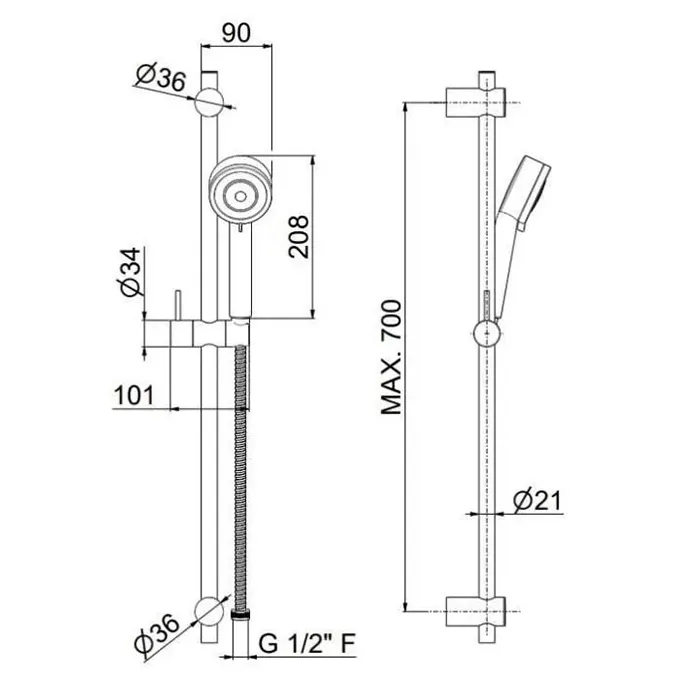 Душевая стойка NOTA c ручной лейкой Kerama Marazzi на 3 режима и шлангом без выхода для подачи воды, хром 16182KM.21.018