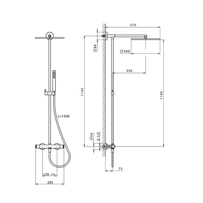 Душевая стойка с термостатическим смесителем Cisal Lineaviva с верхним душем 300 мм., держателем, ручным душем и шлангом 1500 мм., хром LVC7803021