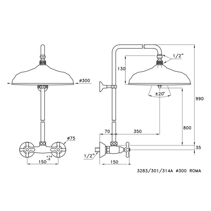 Душевой комплект Stella Roma 3283/301/314A-300: смеситель, штанга+ручной+верхний душ 220 хром RM 02413 CR00