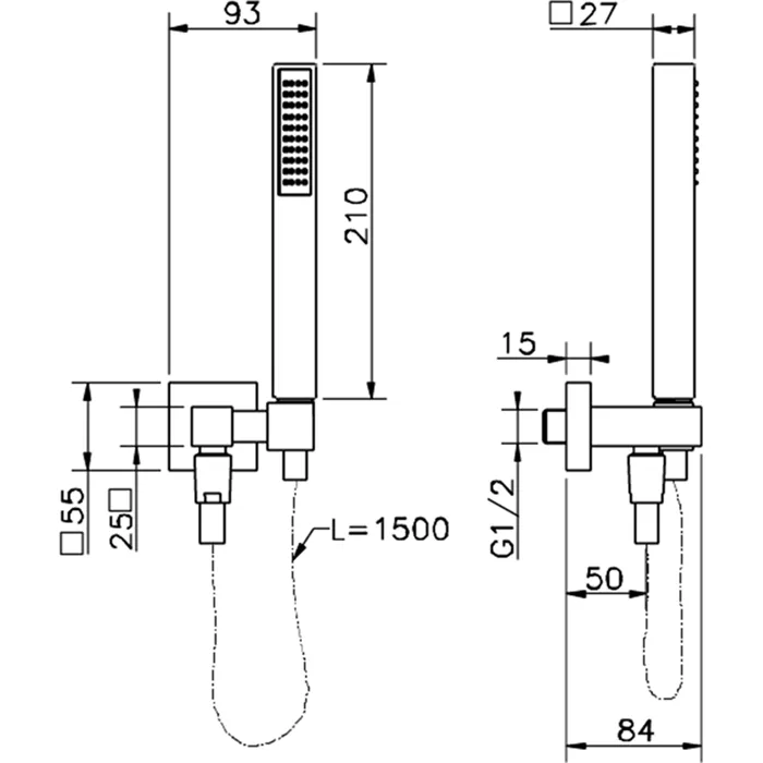 Душевой гарнитур Cisal Shower ручная лейка,шланг 150 см,держатель настенный для лейки, хром DS01828021