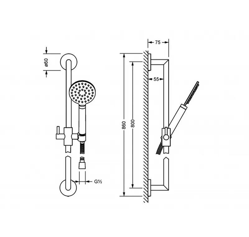 держатель, душевая штанга, ручной душ, шланг