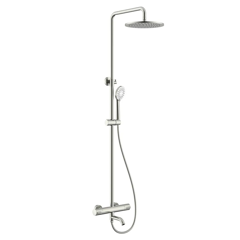NEMO NM-9012BN Душевая колонна термостатическая, с изливом, с ручным (ABS) и верхним душем (250 мм) и шлангом 1,5 м BRUSH NICKEL