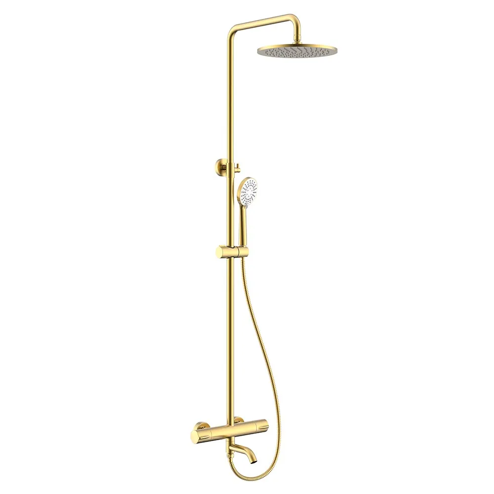 NEMO NM-9012BG Душевая колонна термостатическая, с изливом, с ручным (ABS) и верхним душем (250 мм) и шлангом 1,5 м BRUSH GOLD