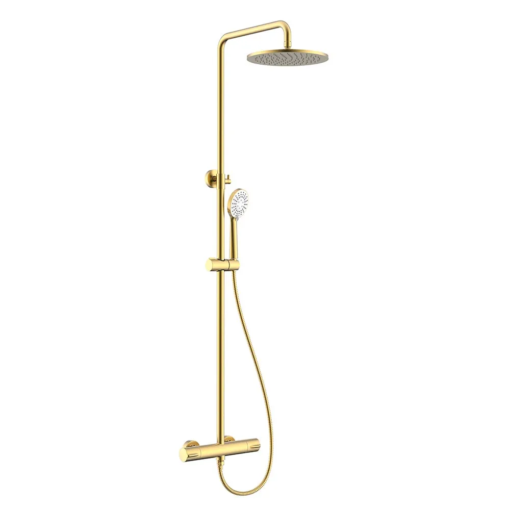 NEMO NM-9011BG Душевая колонна термостатическая с ручным (ABS) и верхним душем (25 см) и шлангом 1,5 м BRUSH GOLD