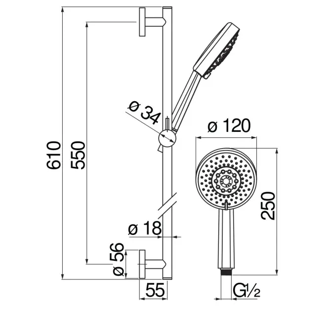 AD140/54FLP душевой гарнитур 60 см, глянцевый черный