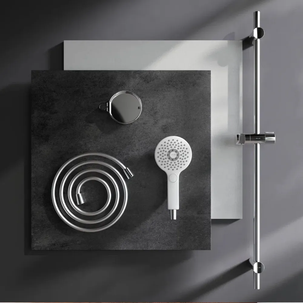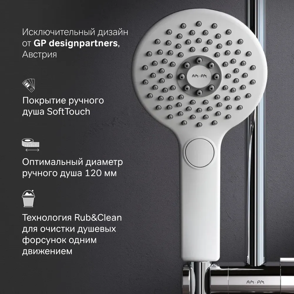 Минималистичный дизайн Hi-Tech который удивляет наполненностью функционала. Уникальный рисунок и диаметр форсунок для равномерного распределения воды. Оптимальный диаметр ручного душа составляет 120мм а также покрытие Soft Touch. Три режима душа для полного расслабления: Spray EnerJet Spray + Massage. Увеличенная длина душевого шланга с защитой от перекручивания позволит комфортно принимать душ. Технология