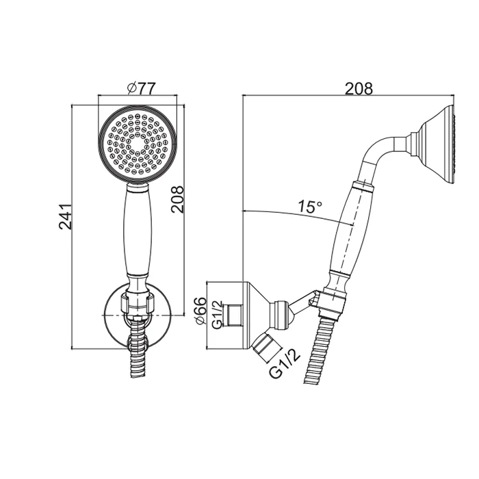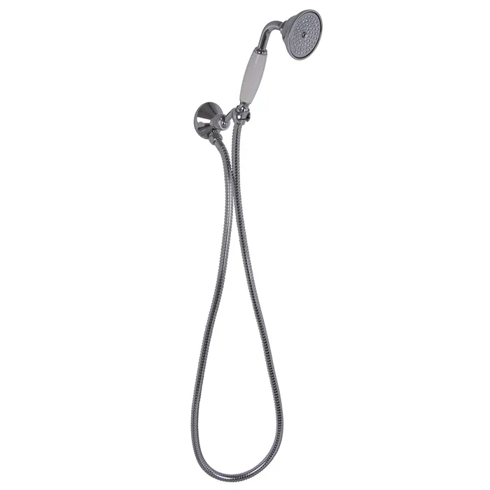 Душевой комплект с ручным душем с белой керамической ручкой Fima Carlo Frattini Wellness держатель с выпуском и металлическим шлангом 1500, цв хром F2287/8CR