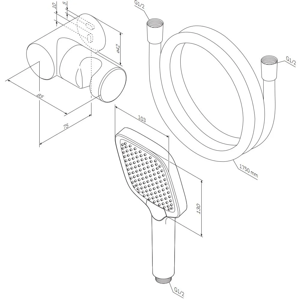 - Размер ручного душа: 103х130